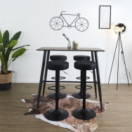 Ensemble table mange-debout avec quatre tabourets assortis, conçu dans un style industriel moderne.