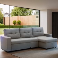 Canapé Lit LIEN Gris Côtelé Convertible et Réversible